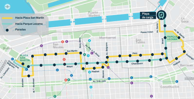 El recorrido total de 12,3 kilómetros atravesará los barrios de Retiro, San Nicolás, Monserrat, San Telmo y La Boca, partiendo desde la Plaza San Martín y llegando al Parque Lezama.